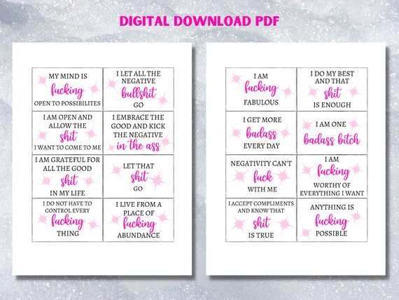 Printable Swear Word Affirmation Cards Swear Word Gifts Law Etsy