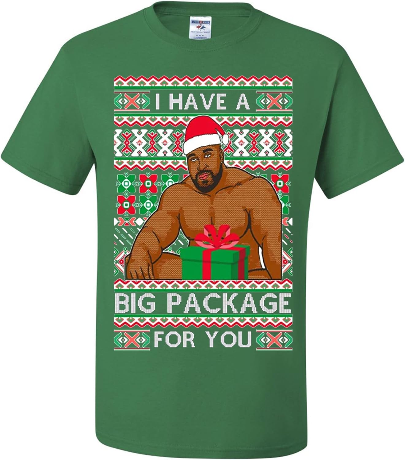 Amazon Com Ugly Christmas Sweater I Have A Big Package Meme Barry Wood Ugly Christmas T Shirts Black Small Clothing Shoes Jewelry