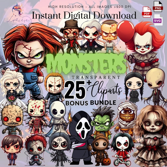 Halloween Monsters Clipart 26 Classic Movie Characters Png Etsy