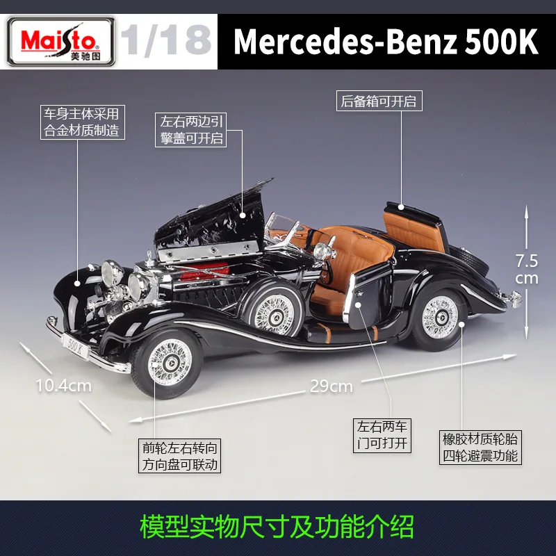 Maisto 1 18 Mercedes Benz 500k Convertible Vintage Car Model Imitation Alloy Display Gift Collection Aliexpress
