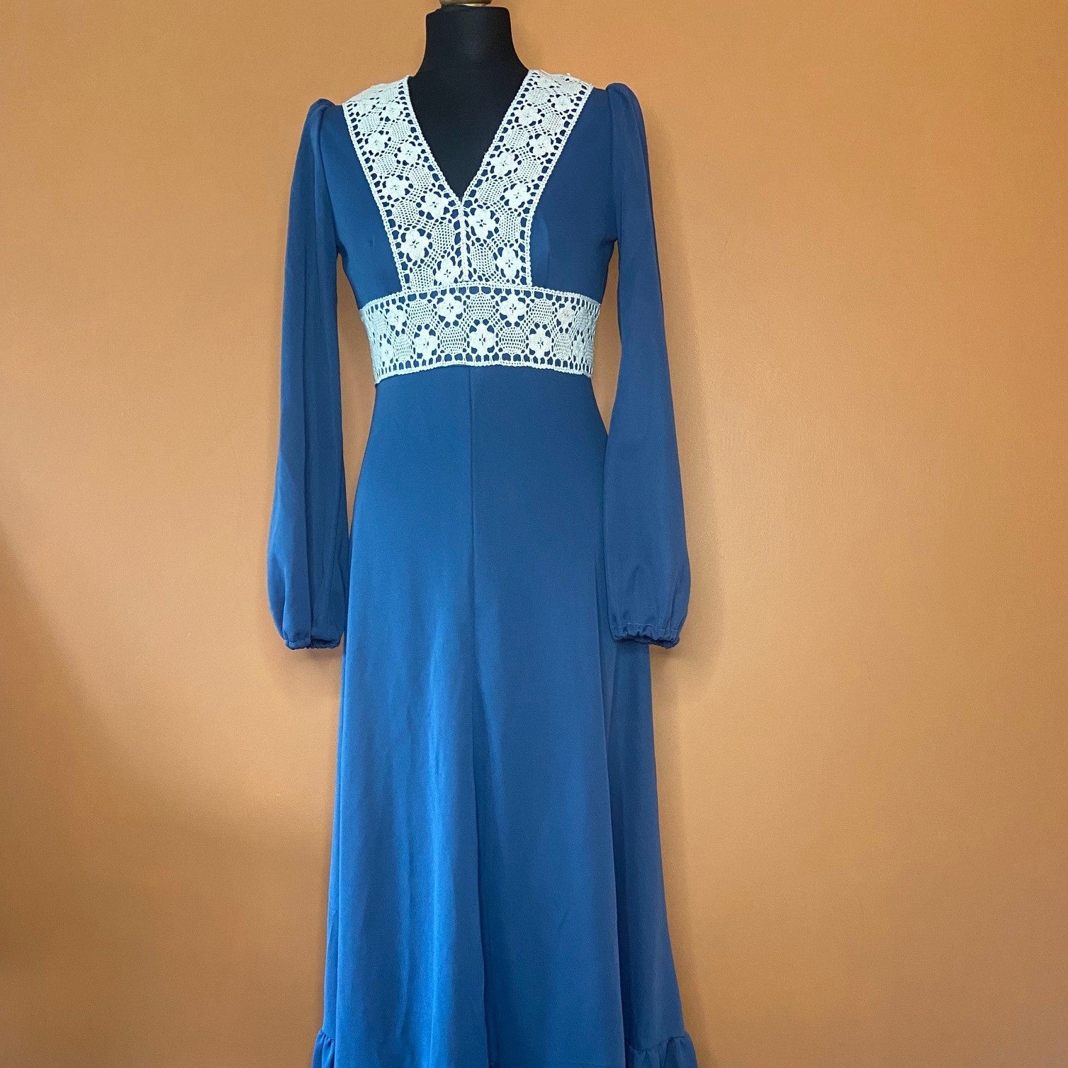 Vintage 70s Blue Maxi Dress Rebels Choice Vintage