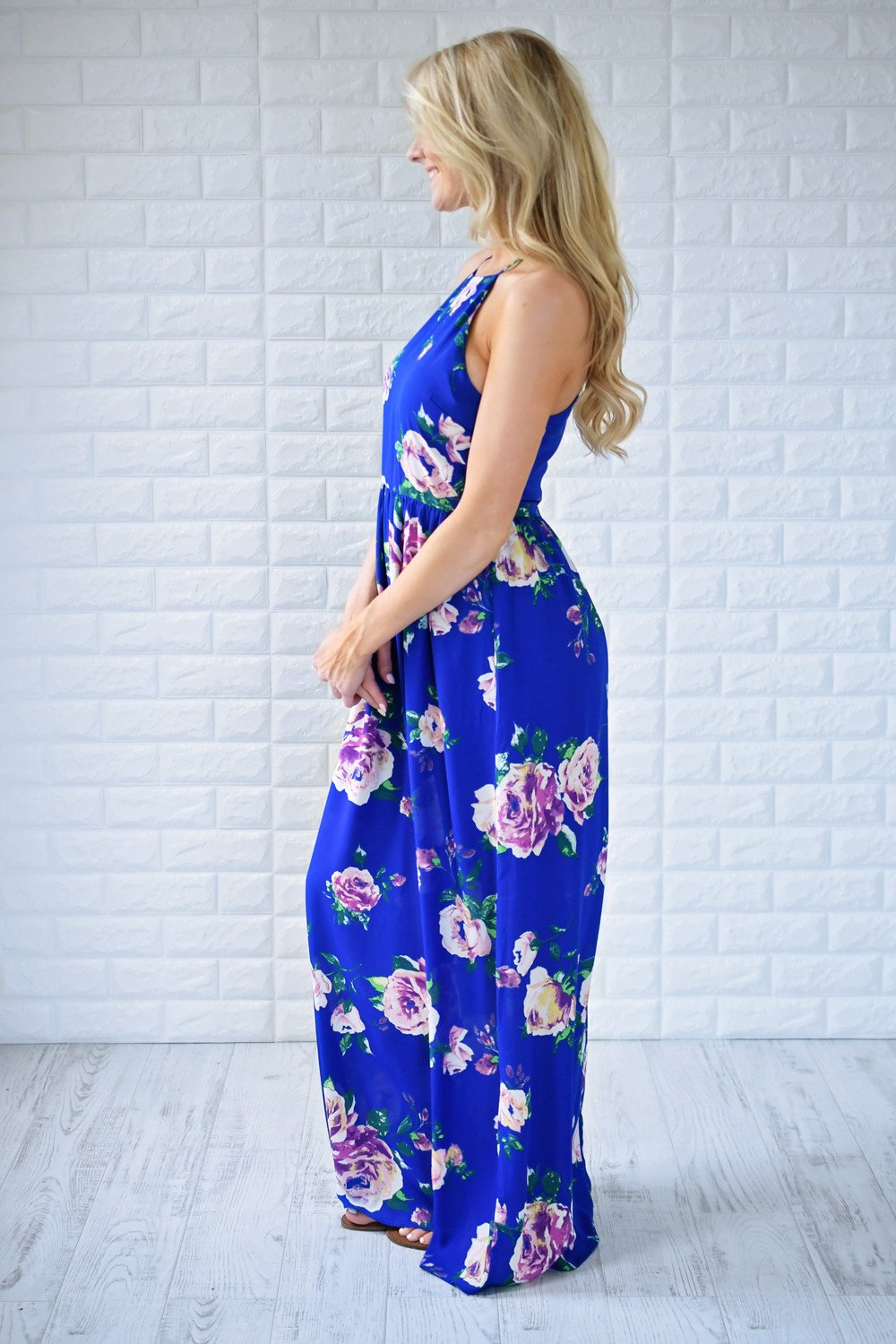 Electric Blue Floral Maxi Dress The Pulse Boutique